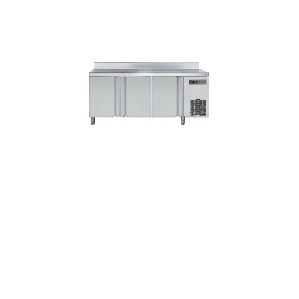 Mesa Refrigerada SERIE 600 MOD. R-15A. 2 Puertas. Mesa de refrigeración estática, fabricada en acero inoxidable AISI 201 en interior y exterior del mueble. Termostato digital DIXELL. Aislamiento de poliuretano inyectado de 40kg/m3 de densidad. Ángulos redondeados en interior y encimera con peto sanitario de 100mm. Evaporador estático. Control electrónico y digital de la temperatura y del desescarche. Evaporación automática del agua del desescarche. Patas de acero inoxidable regulables en altura .Estantes de acero con soportes de sujeción regulables en altura Fiabilidad garantizada por el uso de componentes de alta calidad, compresores de bajo consumo y optimización de los parámetros de los controles electrónicos testeados. La unidad de refrigeración cuenta con un amplio sistema de aireación frontal para facilitar la circulación del aire. En caso de espacio reducidos, este sistema mejora el funcionamiento del grupo de manera significativa. Puertas con dispositivo fijación de apertura que nos aporta ahorro de energía y comodidad en el trabajo. Las puertas disponen de tirador integrado fácil de limpiar. Cuentan de serie con todos los elementos para facilitar la limpieza, burlete sustituible, guías desmontables. Refrigerante R-134 Temperatura de trabajo: de 0º a 10ºC, con 38ºC de temperatura ambiente. Características según modelos:
