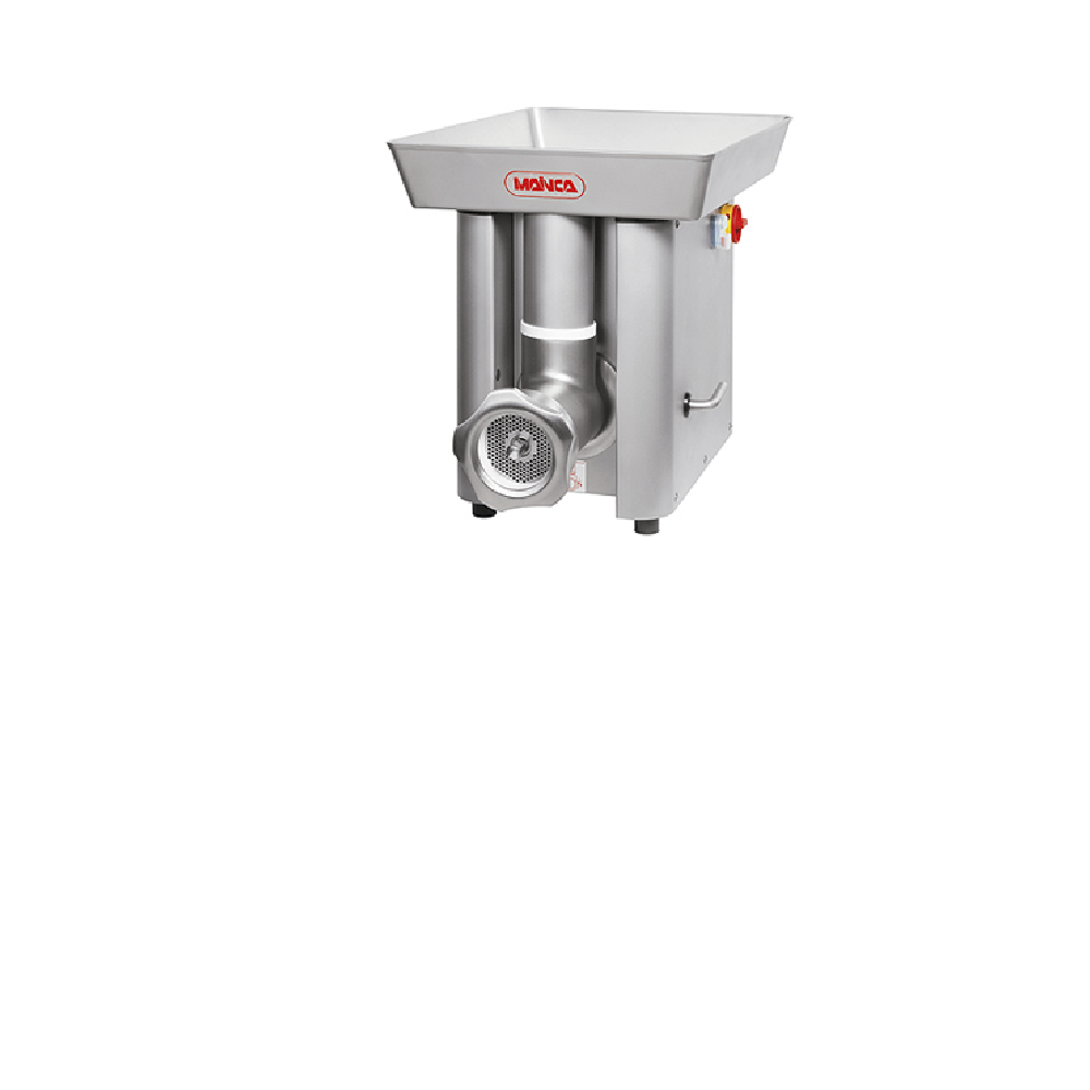 Picadora de carne PC-114 MAINCA con bancada. Construcción: Totalmente en acero inoxidable 18/10. Transmisión: por engranajes bañados en aceite. Producción: ± 1150 Kg/h. Motores: Trifásicos de 5 HP / 3,7 kW (230-400V 50Hz / 220V 60Hz) Dimensiones de la base: 34 x 54 cm Dimensiones de la bandeja: 50 x 69 cm /