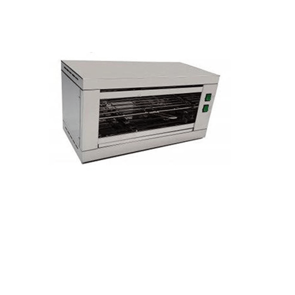 Tostador simple eutron XDT-1. Construido en acero inoxidable. Tres resistencias por nivel (6 en total). Cajón recogemigas. Rejillas protectoras de tubos de cuarzo. 2 interruptores. Medidas 532x290x250mm Ancho-alto-Profundo. Fabricado en Europa. Resistencia de Cuarzo de 395 mm (sin terminales)